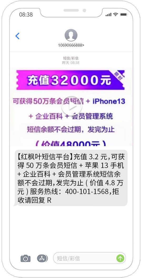 視頻短信發送能夠覆蓋移動、聯通、電信用戶,正規集團視頻短信通道,快速、可靠、穩定、形象好,能快速將您的訊息投放到用戶的手機。